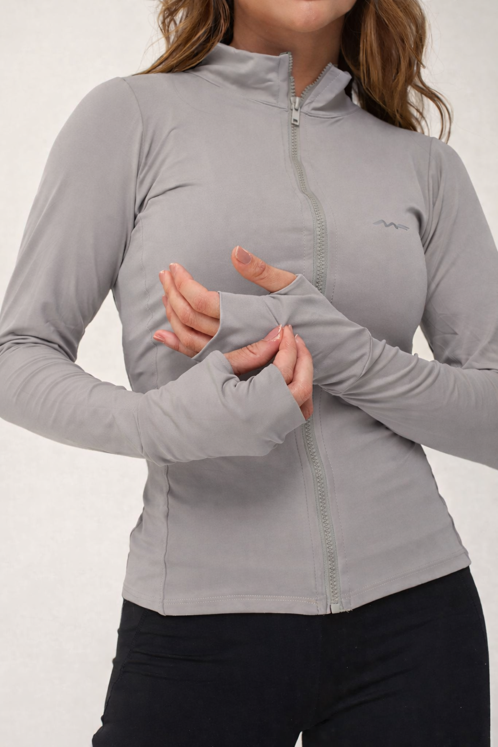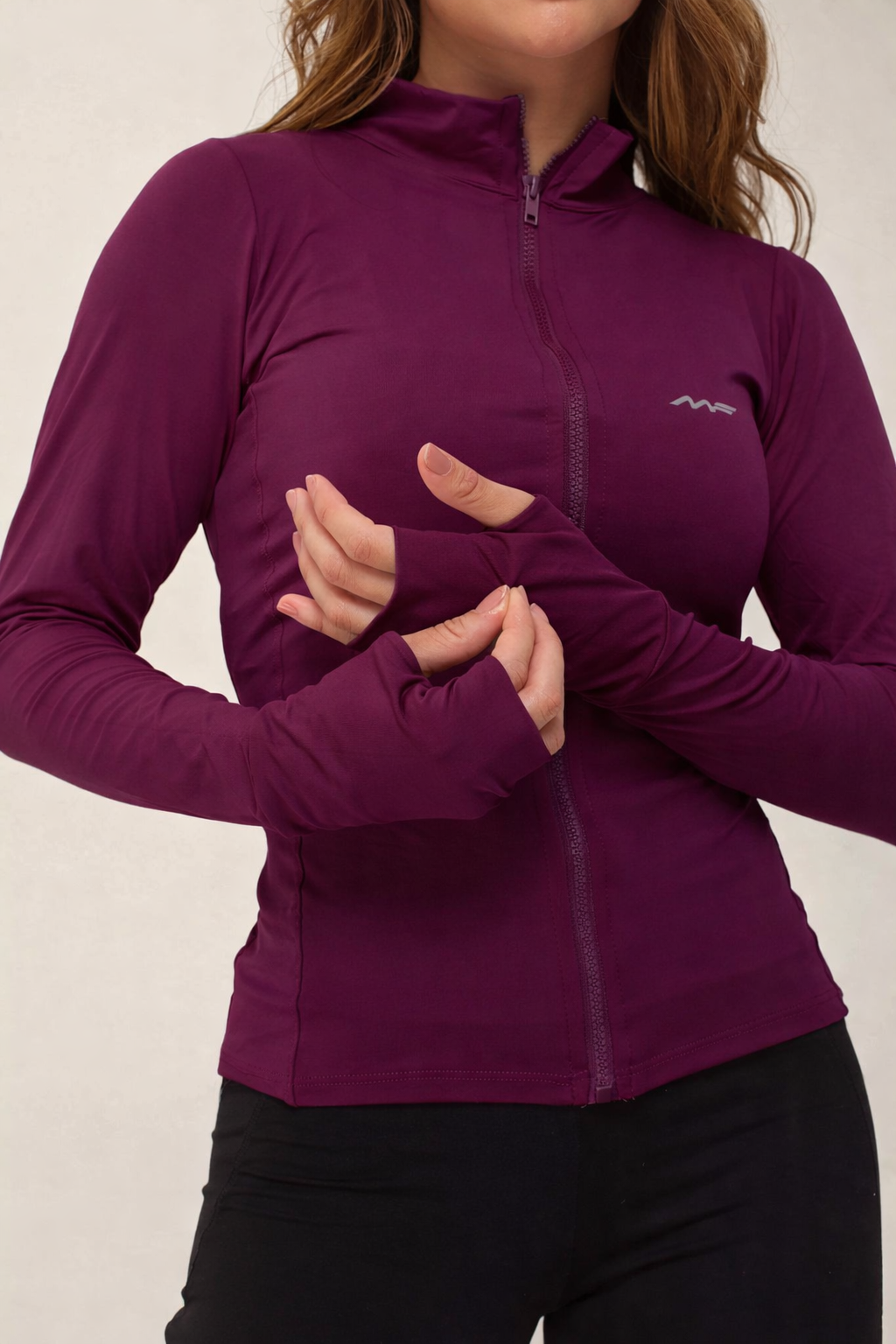 Conta com fechamento frontal em zíper, gola alta para maior proteção e mangas com abertura para os polegares, que ajudam a manter o casaco no lugar durante a prática esportiva. O tecido leve e respirável proporciona rápida secagem e sensação de frescor.