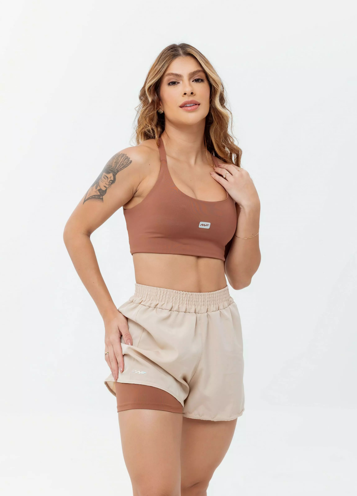 Sua composição é de 91% poliamida e 9% elastano, garantindo ajuste perfeito ao corpo e liberdade de movimento.